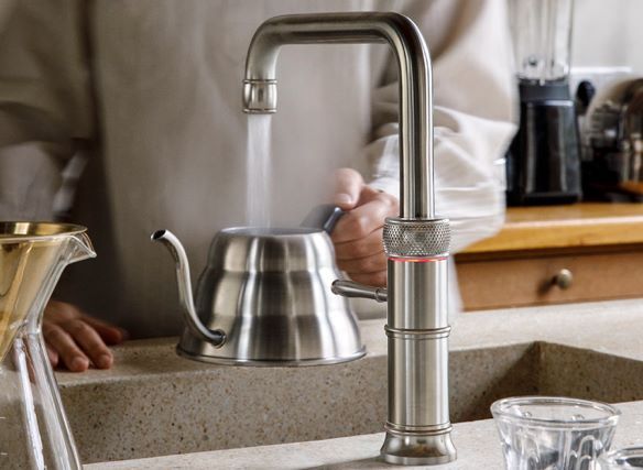 De alles-in-één-kraan van Quooker in een klassiek jasje. Deze geeft kokend, warm en koud water. En, in combinatie met de Quooker CUBE, ook koel bruisend en gefilterd water. Verkrijgbaar met een ronde of vierkante uitloop en is leverbaar in de kleuren Chroom of Roestvrijstaal.
